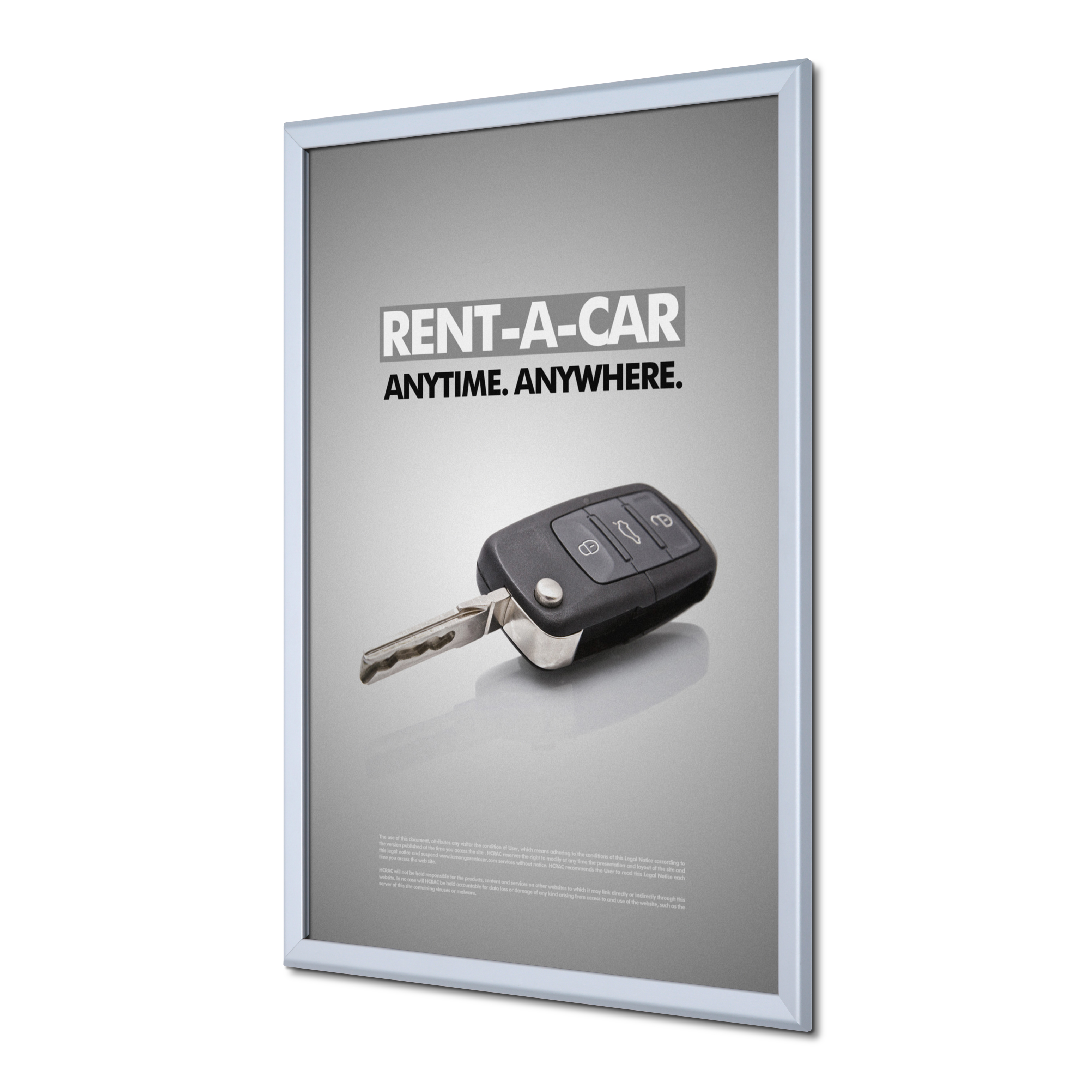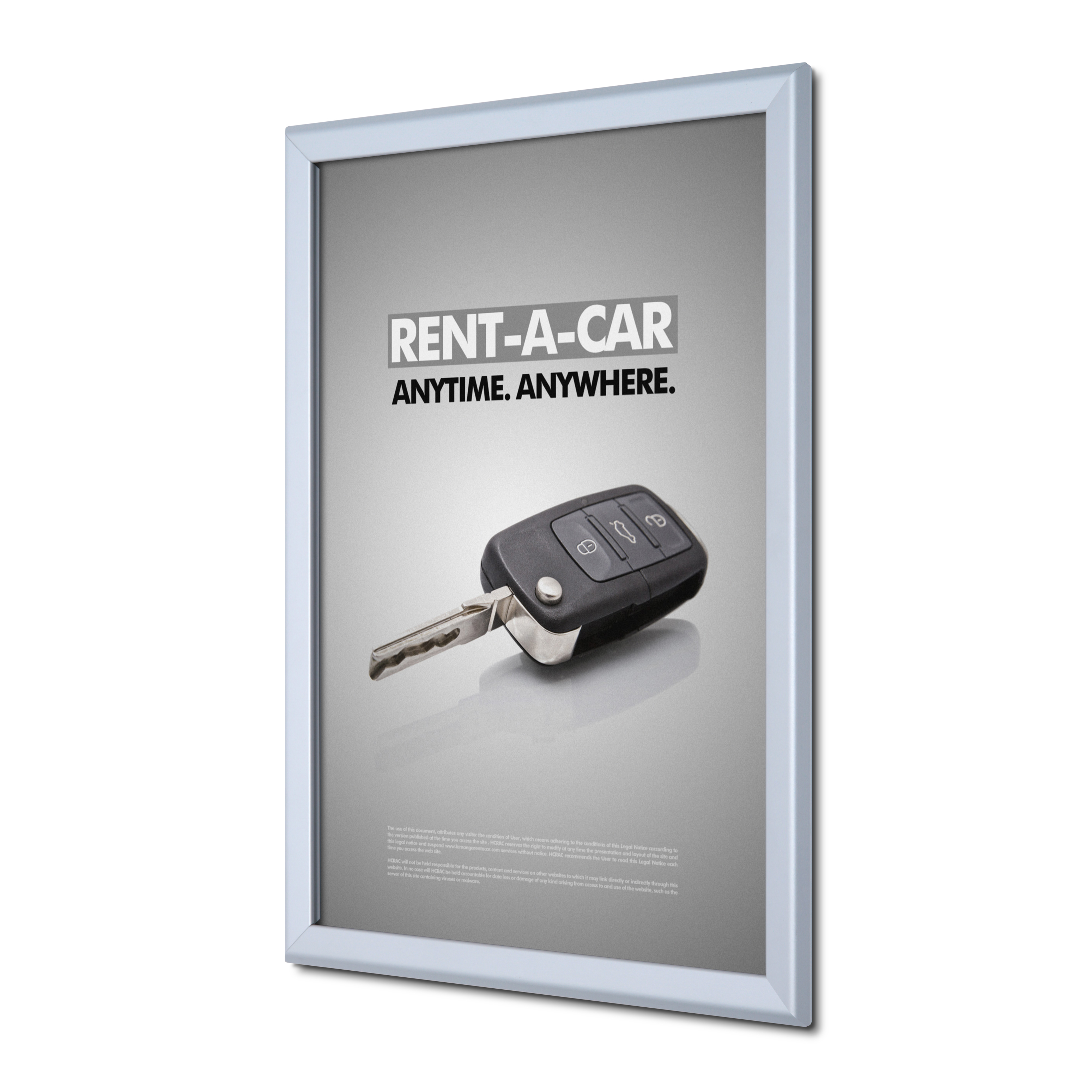 Stabiler Rahmen für große Formate bis 100x140 cm. Der Aluminiumrahmen verfügt über ein praktisches Klapp-Profil zum mühelosen Motivwechsel. Den optimalen Schutz Ihrer Plakate bietet eine 0,5 mm starke und UV-resistente Antireflex-Abdeckfolie (nachbestellbar). Vorbohrungen in der Rückwand machen die sichere Wandbefestigung im Innenbereich möglich. Diese Standardvariante ist in 7 verschiedenen Formaten lieferbar und damit vielseitig einsetzbar.