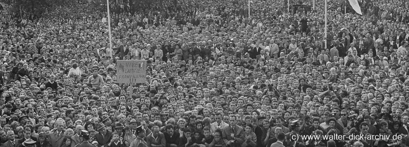 Vor einer großen Menschenmenge auf dem Platz zwischen Rathaus ud Gürzenich hielt der französische Präsident Charles de Gaulle bei seinem Besuch in Köln eine Ansprache. Die großen Staatsbesuche der 60er Jahre zogen jeweils Tausende von Zuschauern an. Der Verfasser erinnert sich , dass es mehrfach schulfrei gab, damit die Schülerinnen und Schüler die hohen Gäste begrüßen konnten.