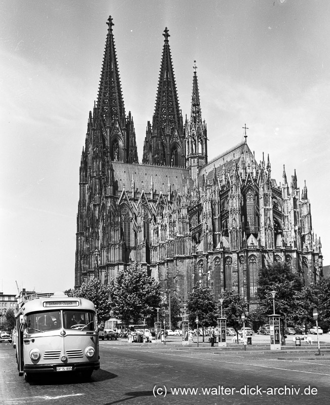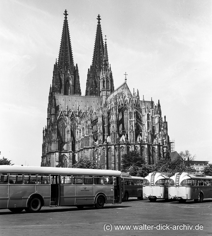 Anfang der 50er Jahre richtete die Stadt zwischen dem Dom und dem Rheinufer, direkt südlich der Hohenzollernbrücke einen Busbahnhof ein. Auf dem Gelände gab es neben fünf "Bahnsteigen" für die Ankunft und Abfahrt der Busse einen geräumigen Abstellplatz. Von hier aus gab es Verbindungen in das links- und rechtsrheinische Umland. Dabei wurden auch Orte bedient, die durch Streckenstillegungen der Deutschen Bundesbahn nicht mehr an den ÖPNV angebunden waren.