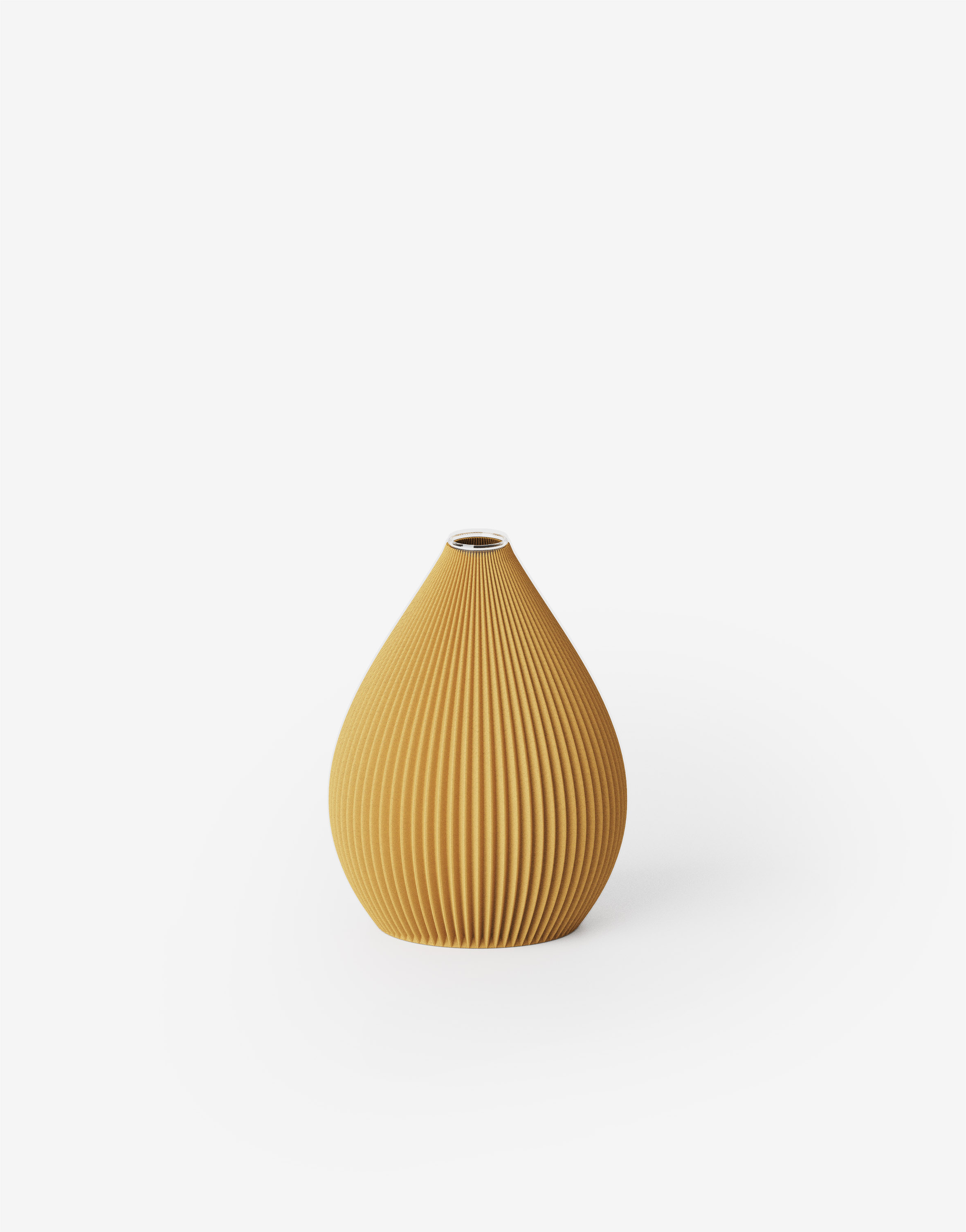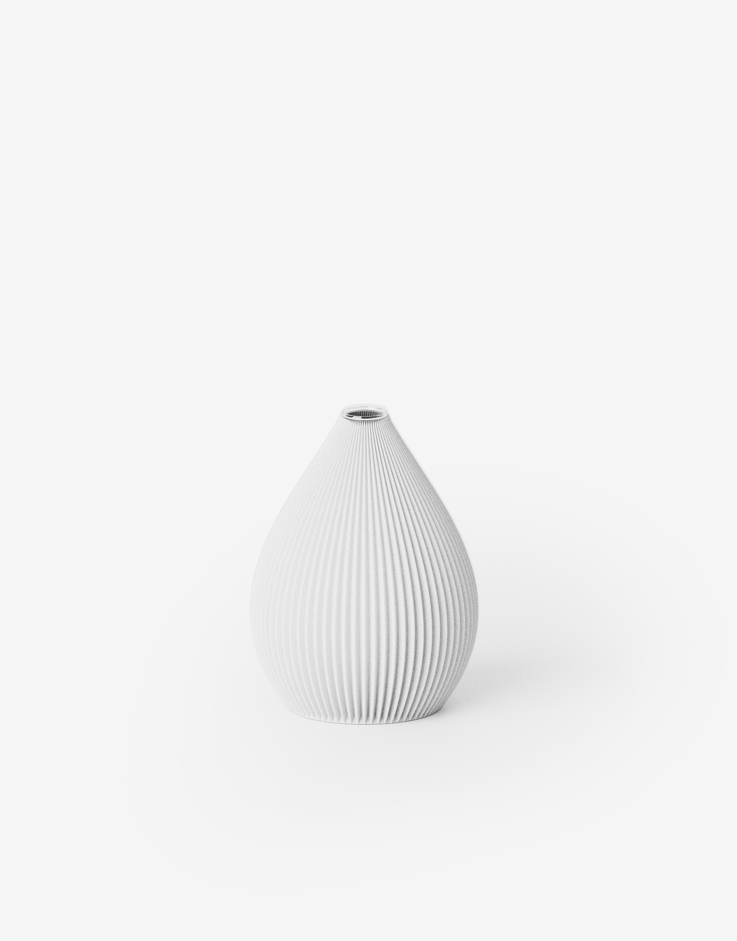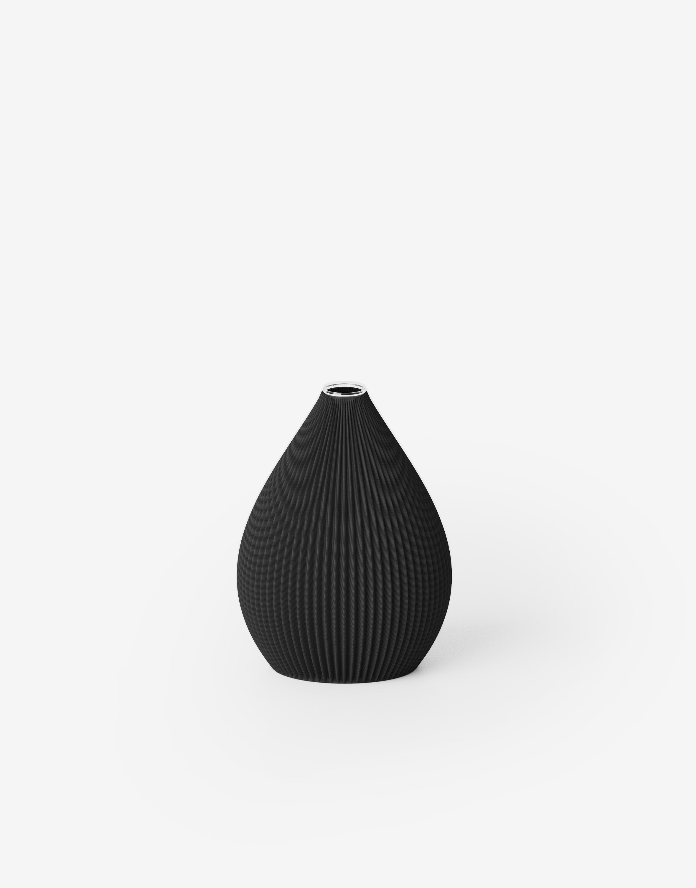 Das Besondere der Produkte: Alle Designobjekte werden in Norddeutschland aus überwiegend recycelten Materialien mittels additiver Fertigung hergestellt. Jede Vase durchläuft einen eigenen Qualitätscheck und wird in sorgfältiger Handarbeit verpackt.