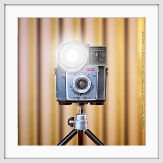 Was passiert, wenn Fotokameras auf die Idee kommen, Selfies aufzunehmen? Historische, teils bizarre und wunderschöne analoge Kameras machen Fotos von sich selbst ... vor dem Hintergrund zeitgenössischer Tapeten. Jürgen Novotny hat mit dieser Serie wunderschöne Fotografien von Fotoapparaten komponiert, die zwar heute keine Rolle in der Fotografie spielen, aber zu Ihrer Zeit teilweise bahnbrechende technische Entwicklungen beinhalteten.