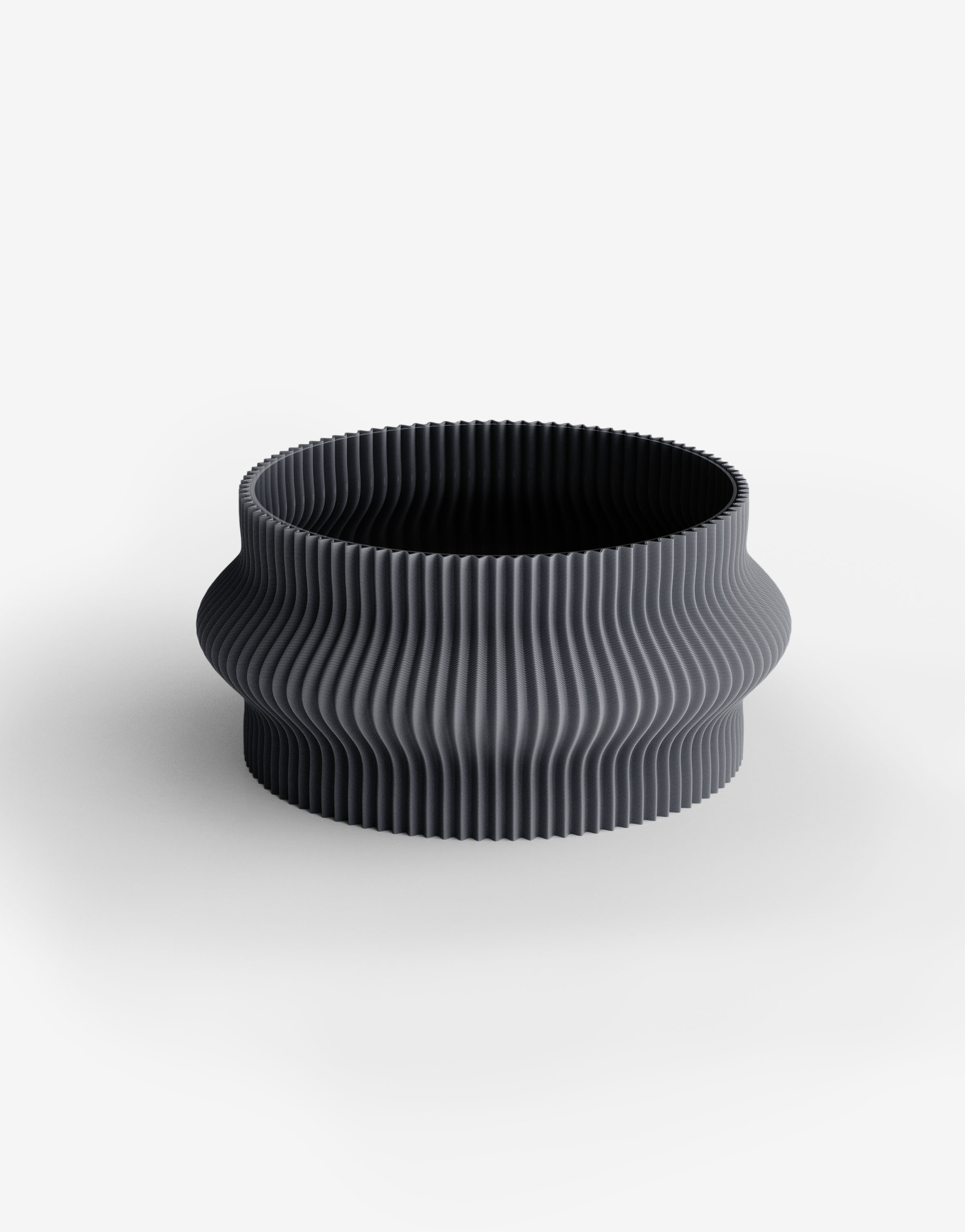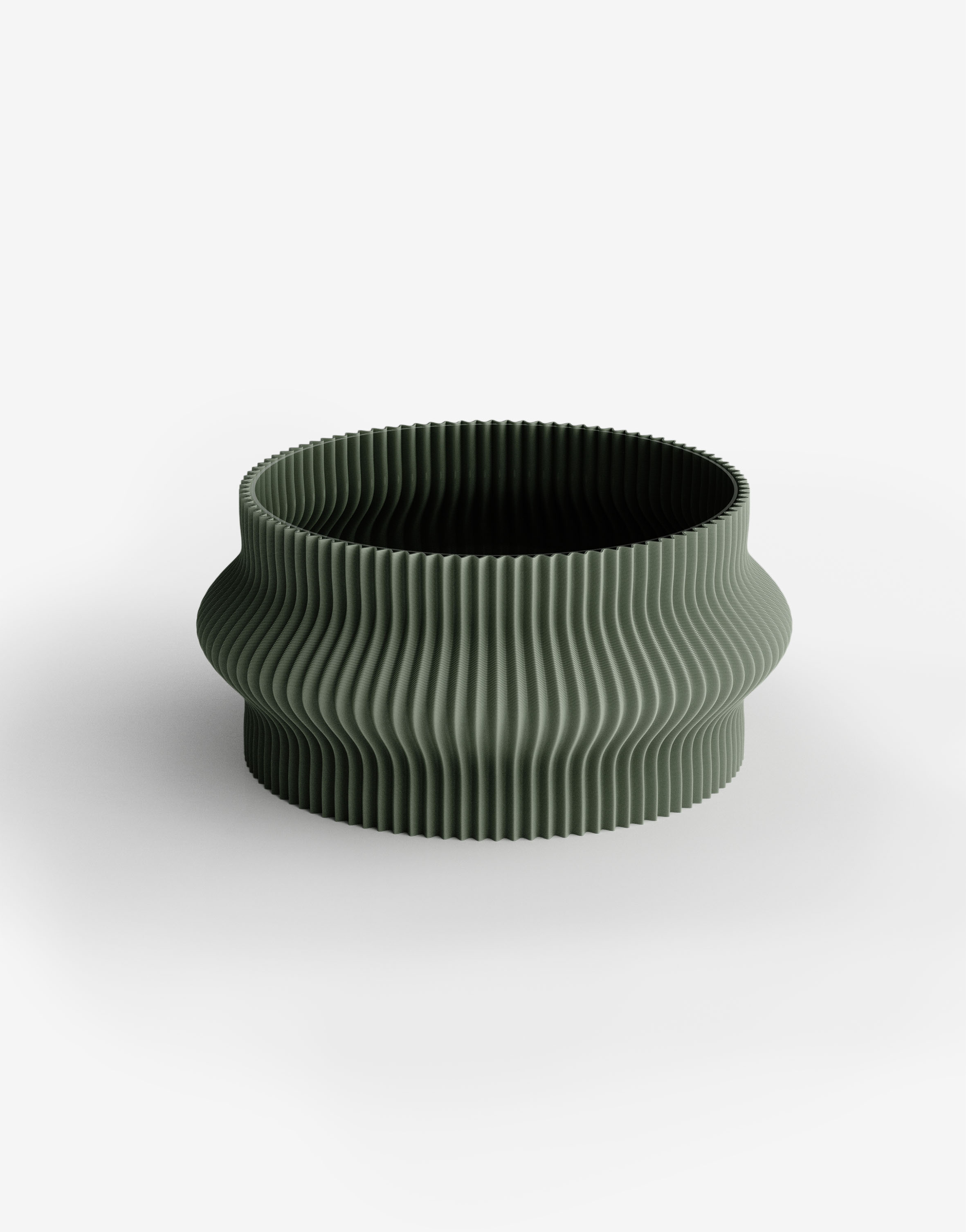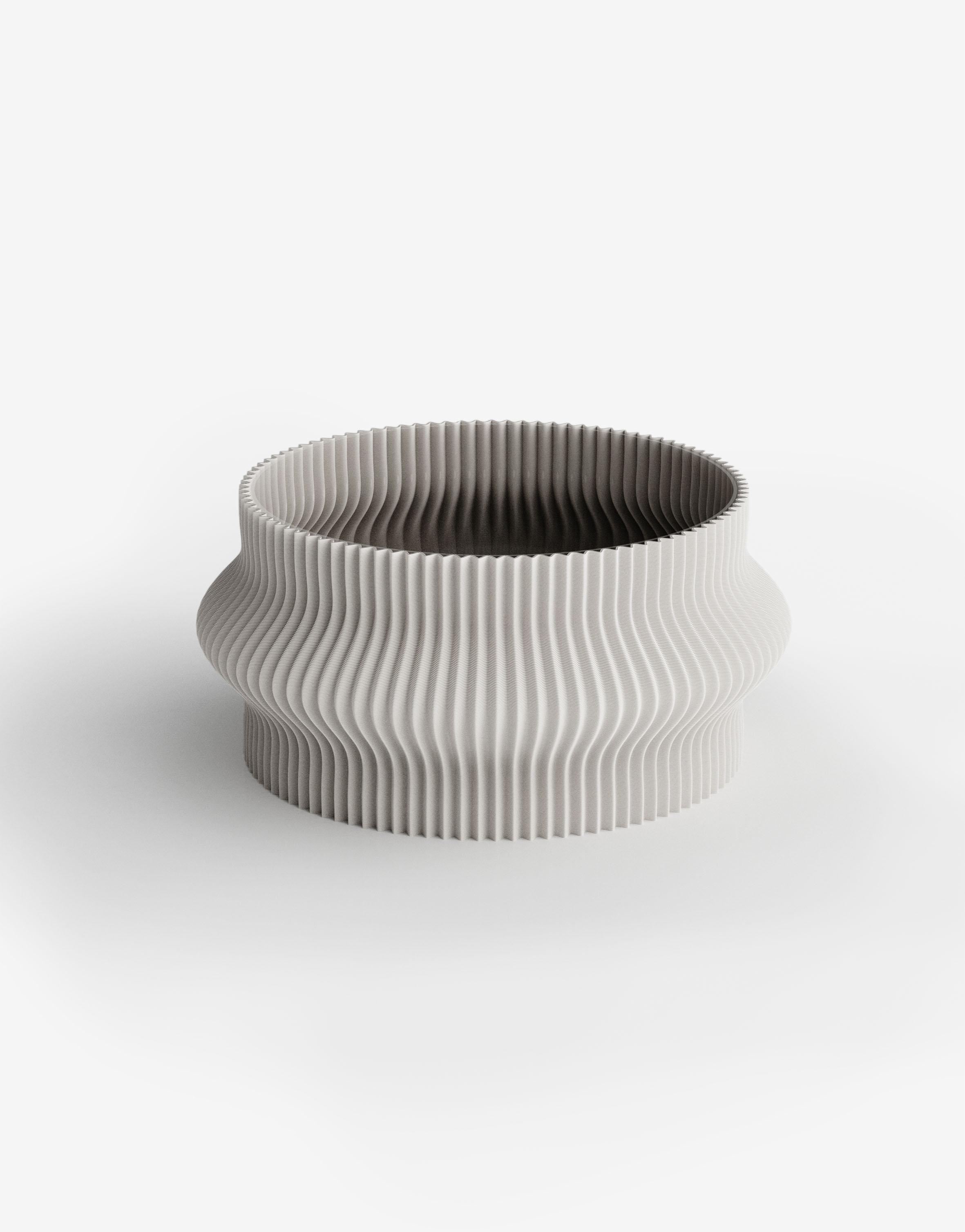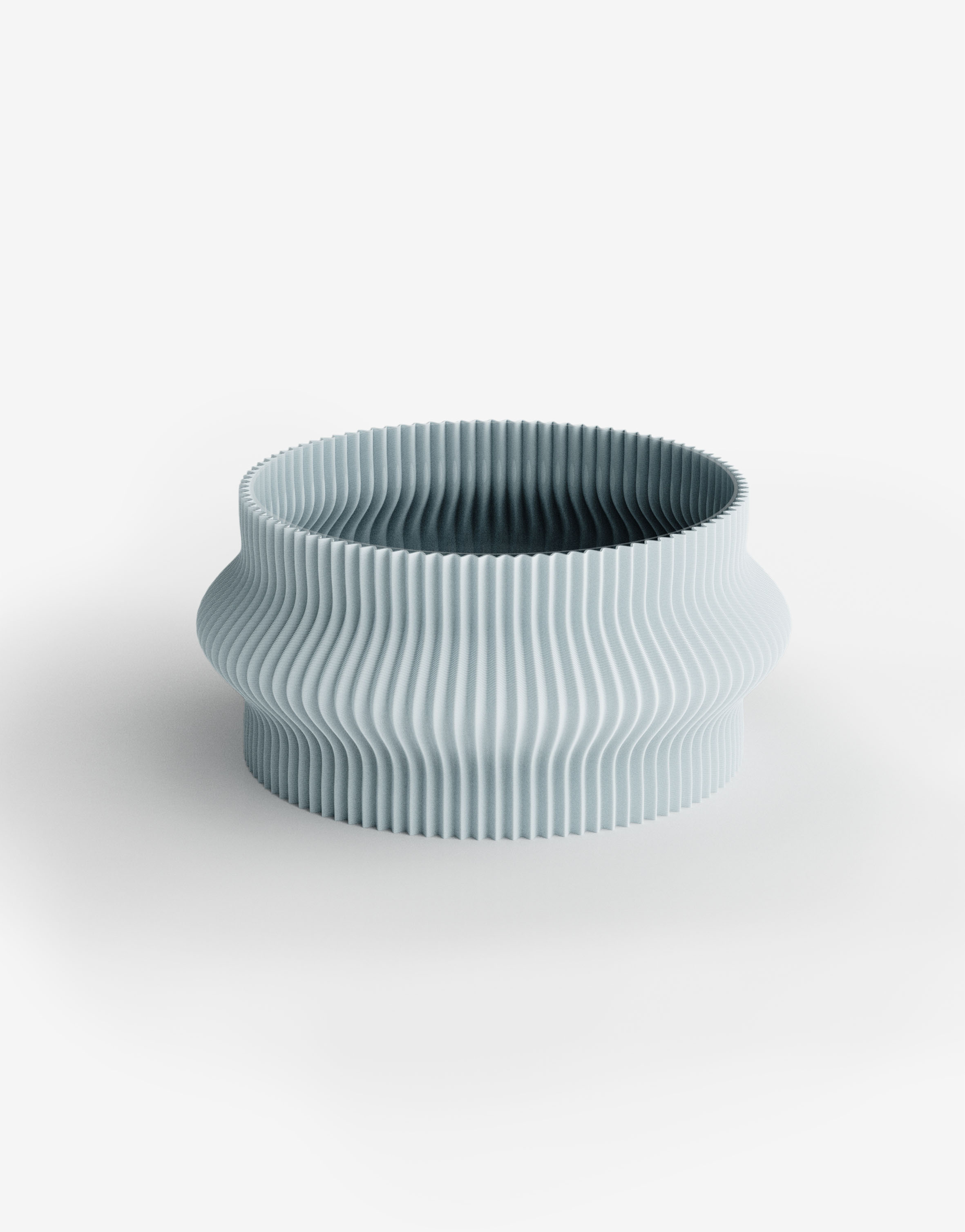 Das Besondere der Produkte: Alle Designobjekte werden in Norddeutschland aus überwiegend recycelten Materialien mittels additiver Fertigung hergestellt. Jede Vase durchläuft einen eigenen Qualitätscheck und wird in sorgfältiger Handarbeit verpackt.
