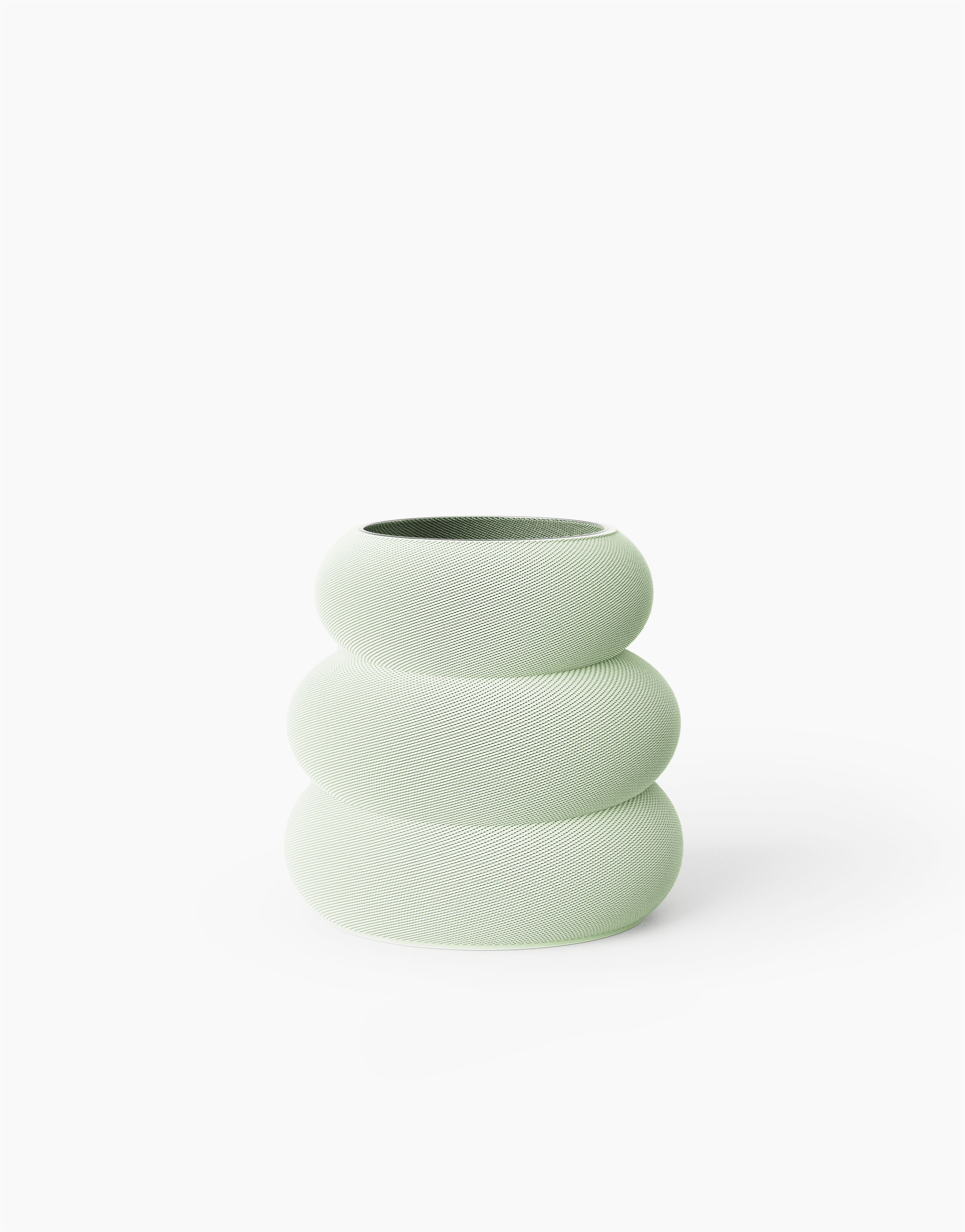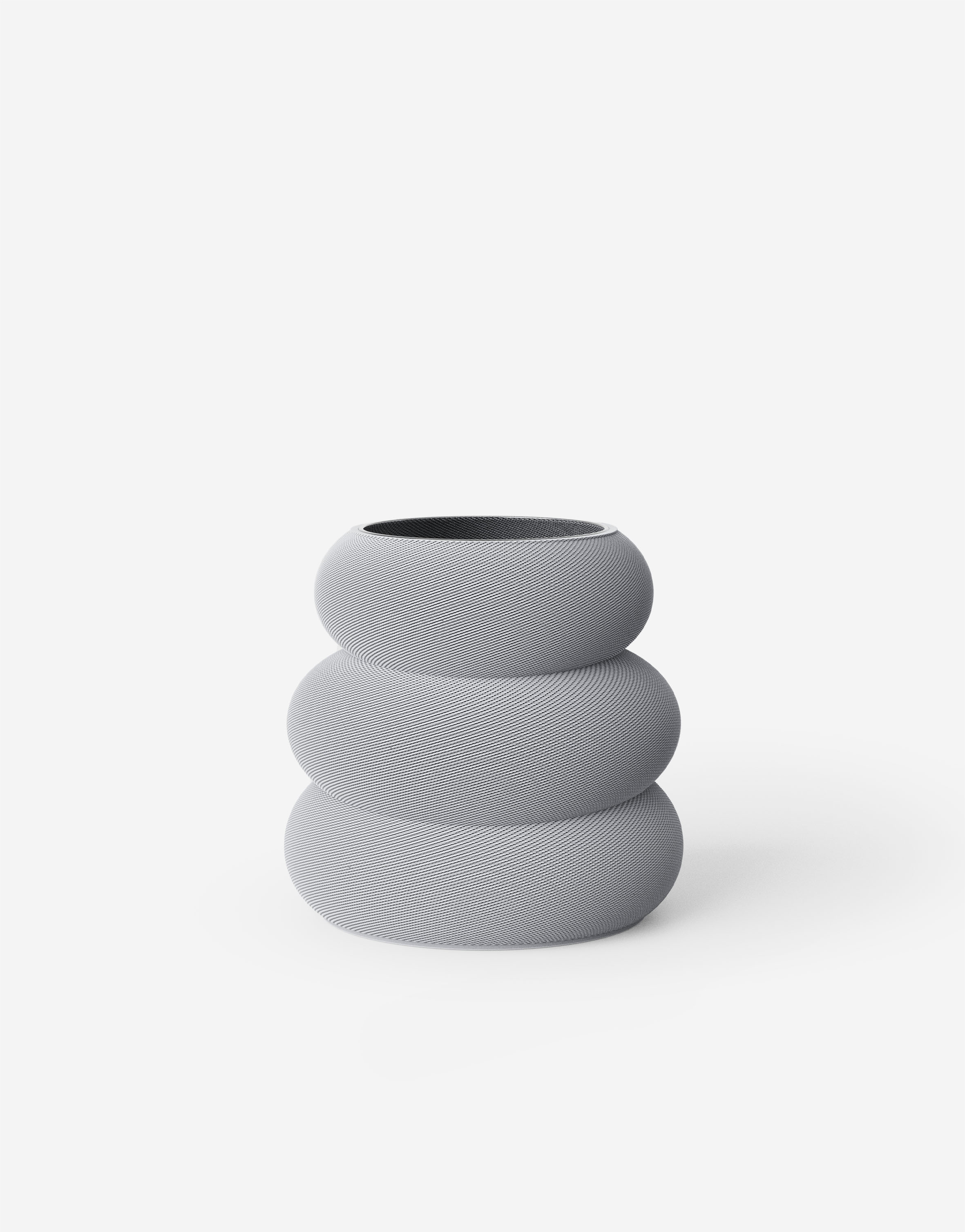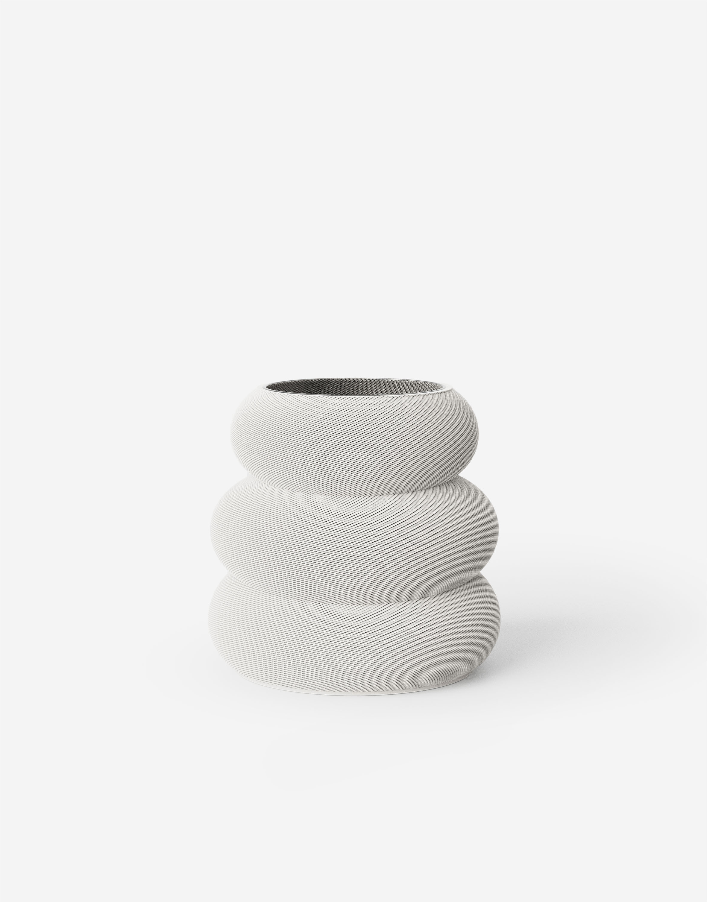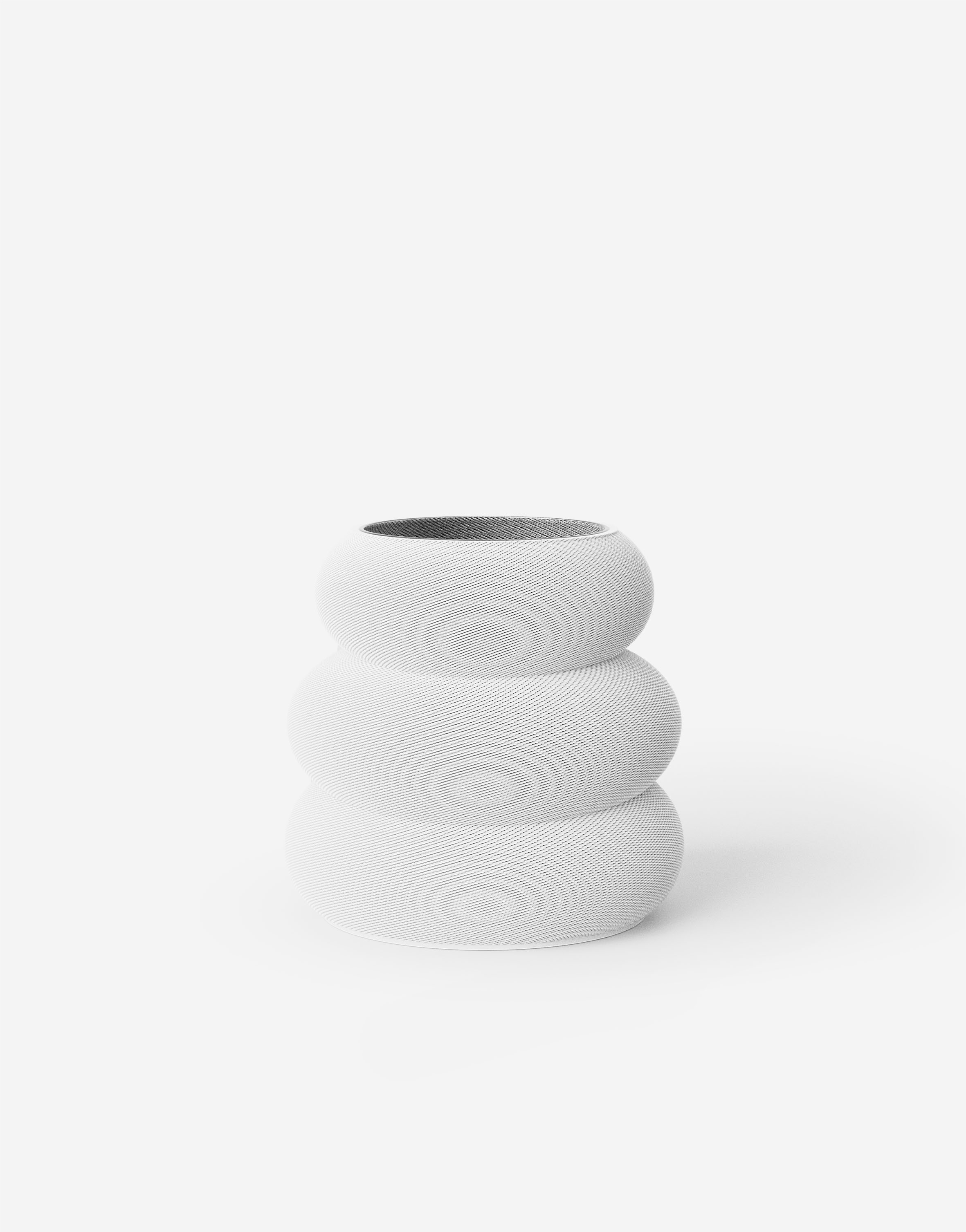 Das Besondere der Produkte: Alle Designobjekte werden in Norddeutschland aus überwiegend recycelten Materialien mittels additiver Fertigung hergestellt. Jede Vase durchläuft einen eigenen Qualitätscheck und wird in sorgfältiger Handarbeit verpackt.