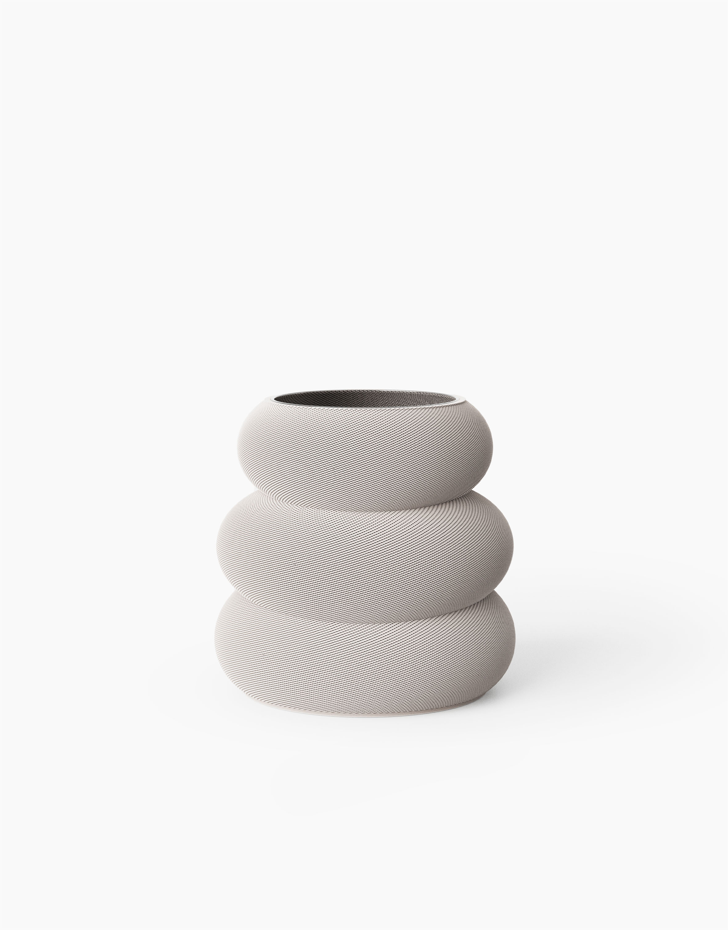 Die größere Flow Vase besticht durch kunstvoll gestapelte, organische Ringe, die eine dezente Wellenform aufweisen. Die stilvolle Designsprache dieser Vase macht sie zu einem einzigartigen Blickfang in jedem Wohnraum.