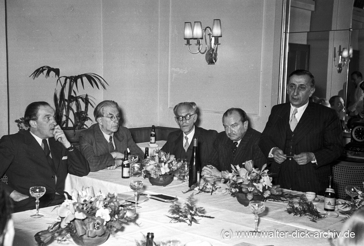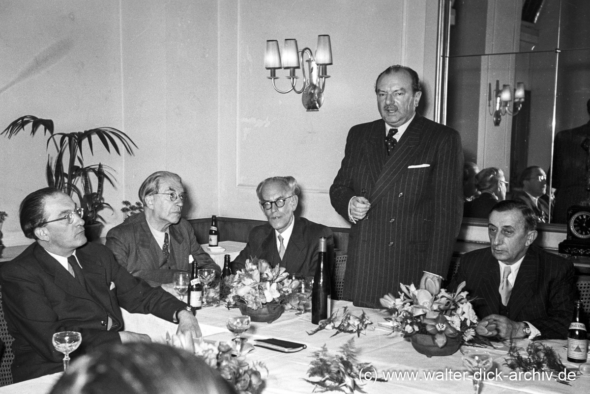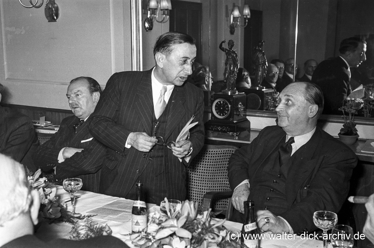 Einighe der Beteiligten hat Walter Dick fotografiert. Links von Robert Görlinger sitzt Bruno Uhl und auf dem letzten Bild der Serie erkennt man ganz links Hans Schmitt-Rost, der damals Pressechef der Stadt Köln wer.