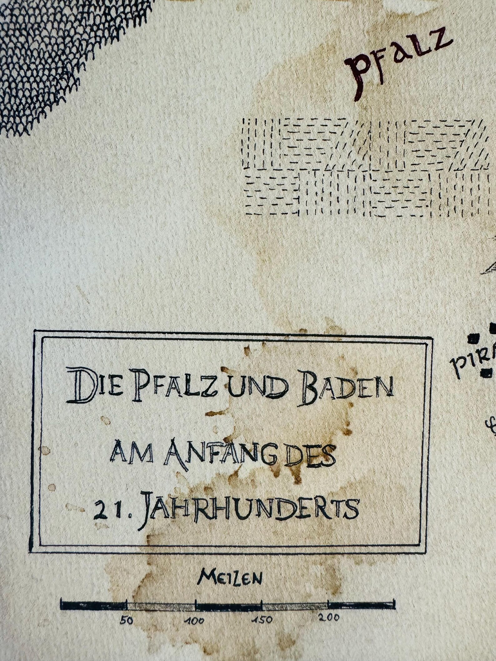 Handgemalte Karte inspiriert durch Herr der Ringe / Mittelerde von der Pfalz und Baden-Baden