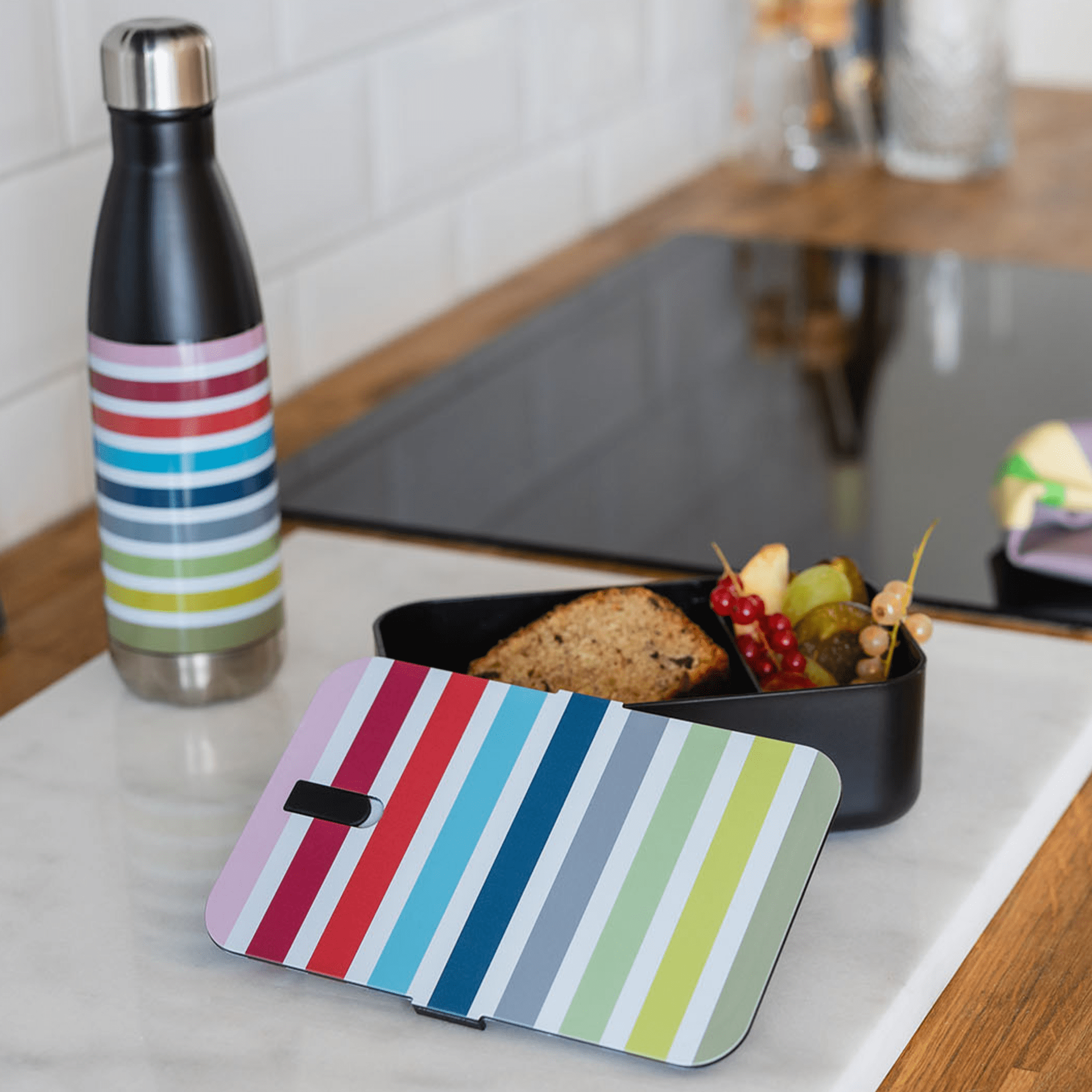 Damit man unterwegs immer seinen liebsten Snack genießen kann, gibt es die Lunchboxen von REMEMBER® in vielen schönen Designs. Die auslaufsicheren und luftdichten Boxen halten Stulle, Obstsalat oder Auflauf lange frisch und die verstellbare Unterteilung bietet die Möglichkeit, zwei verschiedene Speisen voneinander zu trennen. Die Lunchbox kann auch zum Einfrieren verwendet werden und das Unterteil ist mikrowellengeeignet.