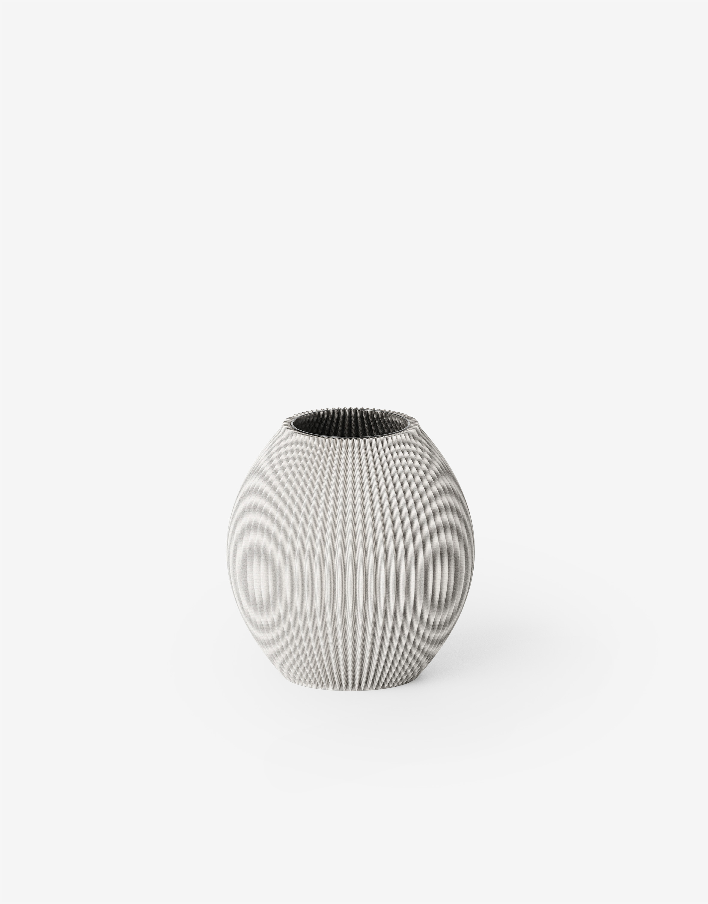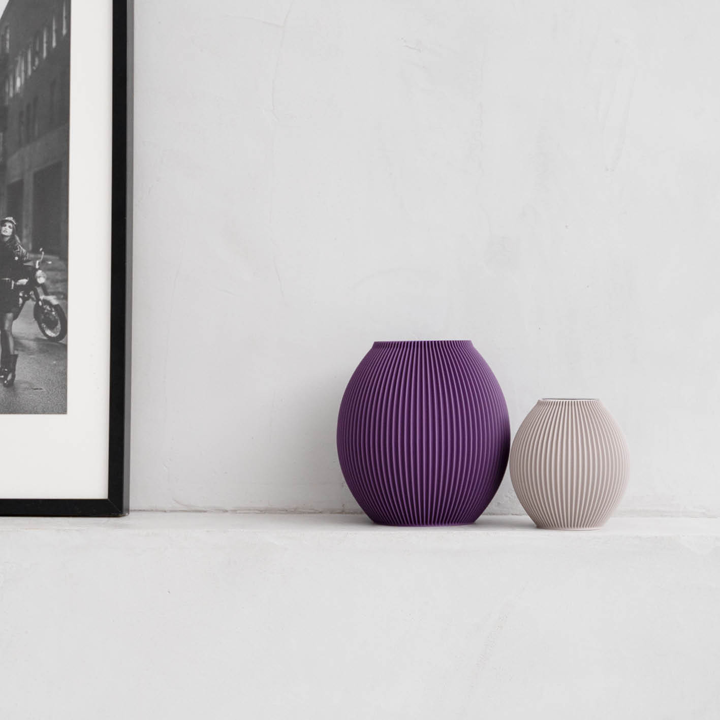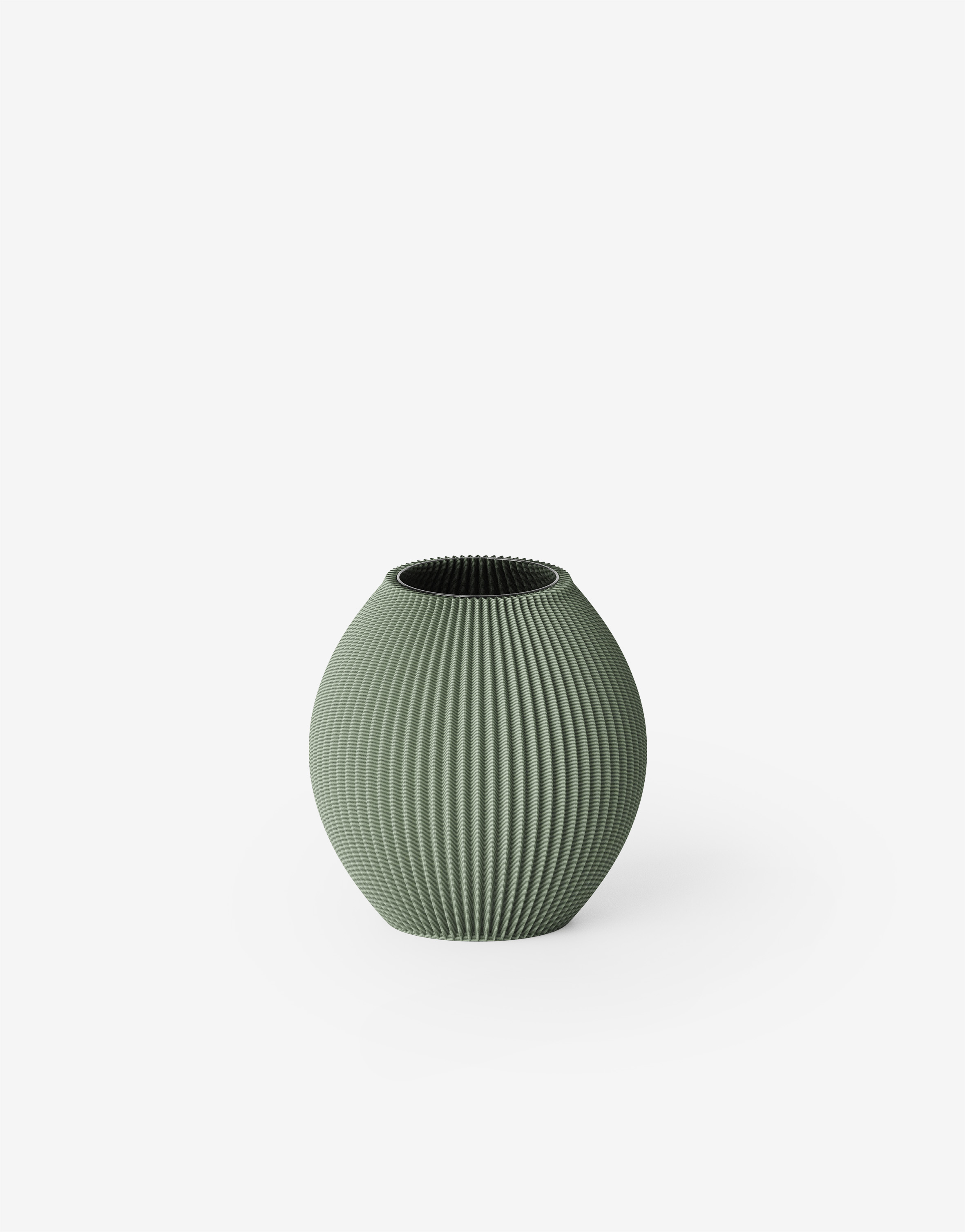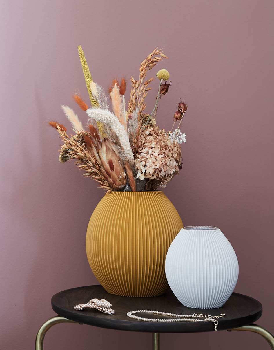 Das Besondere der Produkte: Alle Designobjekte werden in Norddeutschland aus überwiegend recycelten Materialien mittels additiver Fertigung hergestellt. Jede Vase durchläuft einen eigenen Qualitätscheck und wird in sorgfältiger Handarbeit verpackt.