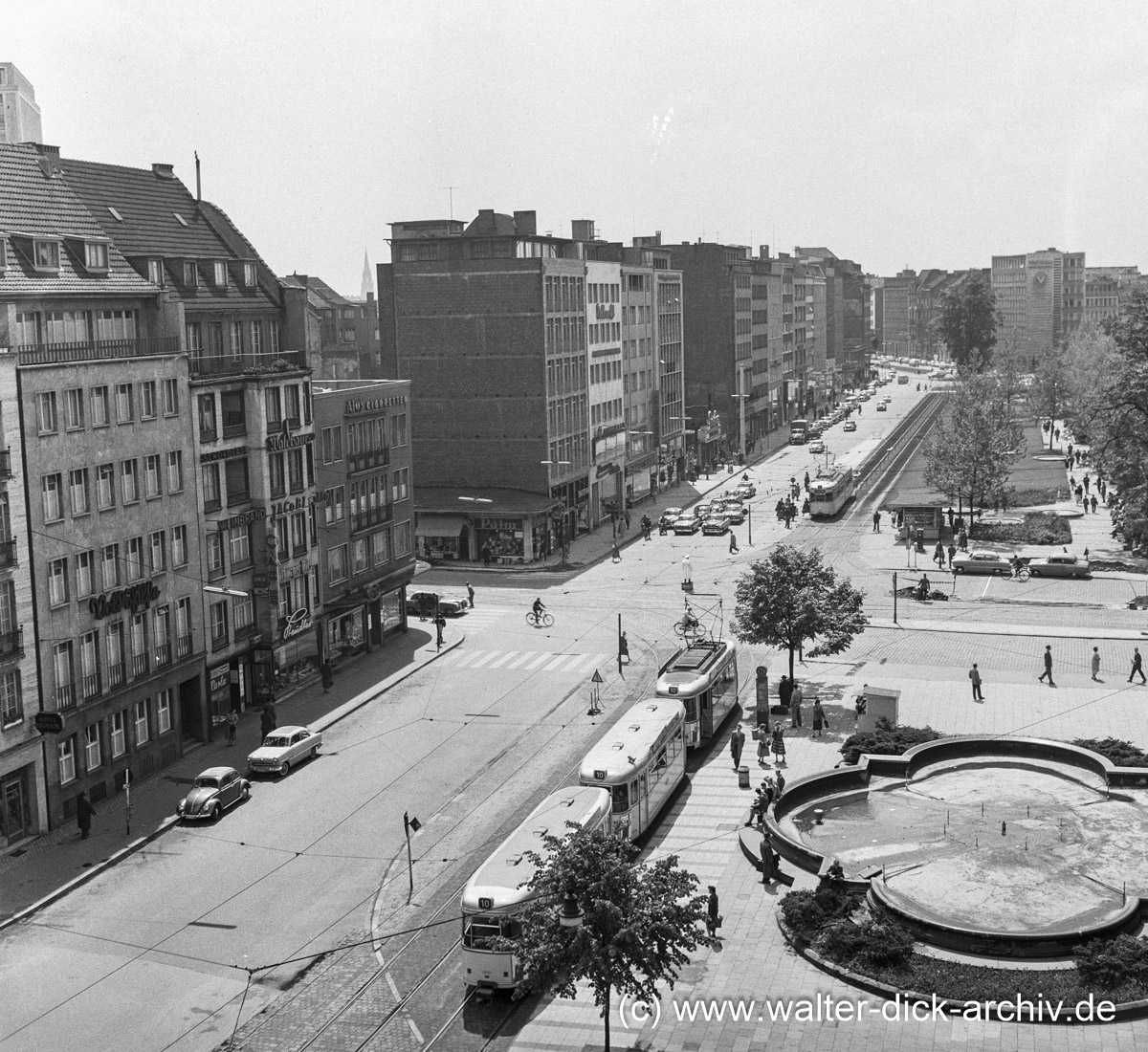 Hinter der Kreuzung mit der Christophstraße (links) und der Gladbacher Straße (rechts) erstreckt sich die in den 50er Jahren errichtete Grünanlage.