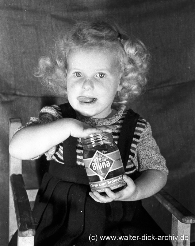 Eigenschaften "Werbefoto für süßen Brotaufstrich BLUNA 1954"