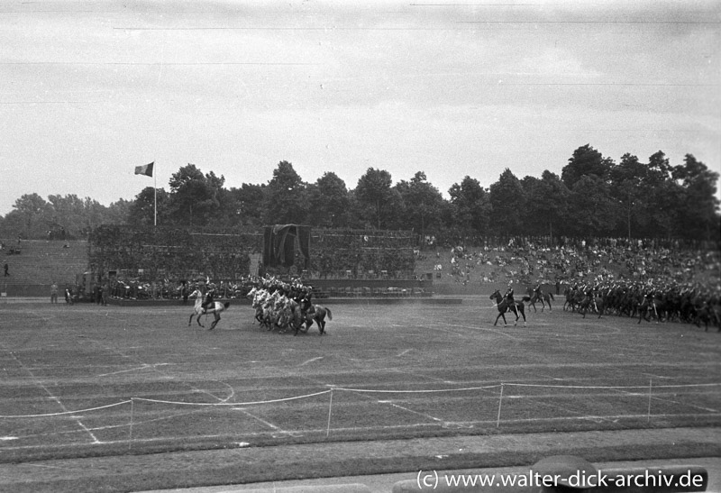 Die meisten Vorführungen-hier reiterliche Vorführungen mit einer Vielzahl von Berittenen-fanden in der sogenannten der Hauptkampfbahn statt, einem kombinierten Fußball- und Leichtathletikstadion. Die Arena, in der bis zu 60.000 Zuschauer Platz fanden, war das Zentrum des Müngersdorfer Sportparks. Sie war ein Vorläufer des heutigen Rhein-Energie-Stadions.